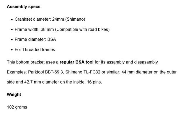 • BIKONE DC TECH BSA SHIMANO BOTTOM BRACKET